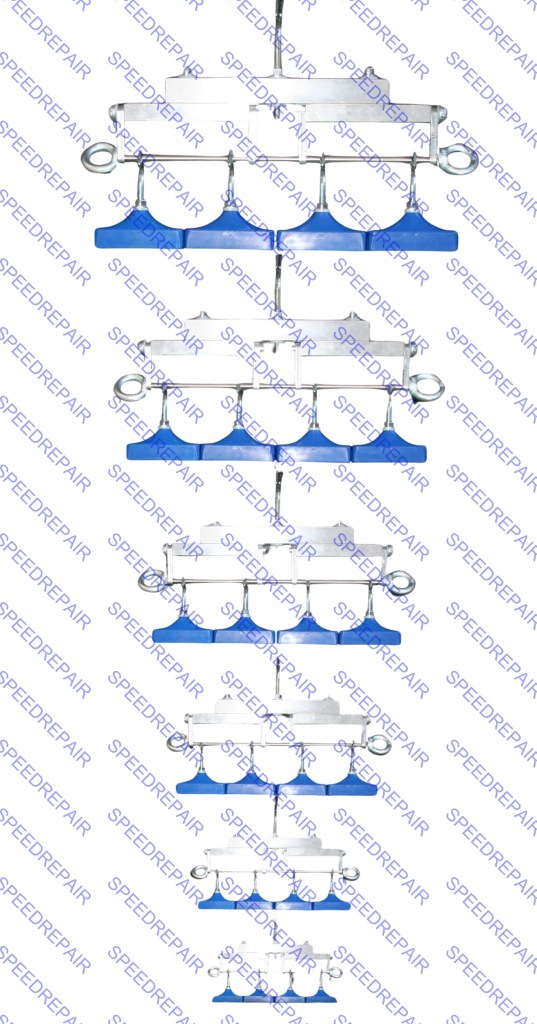 SPEEDREPIR ha concepito questo sistema per poter permettere all’operatore di allestire il kit su misura, partendo dal più basico e arrivando al più attrezzato. I moduli che compongono il kit, i supporti degli utensili e degli estrattori possono essere assemblati in varie posizioni, invertiti, sollevati e abbassati per agevolare l’operatore e se necessario per aumentare gli spazi a disposizione con l’ausilio di moduli aggiuntivi.